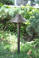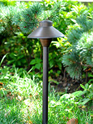 This path light fixtures has a removable top that reveals a kerosene wick. Fill the fixture with kerosene to illuminate without electricity. Or use a 12VAC G4 lamp.